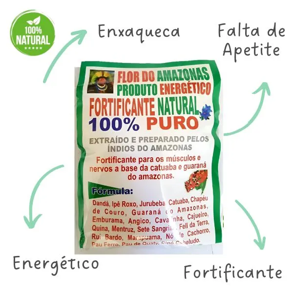 Extraída e Preparada pelos Índios da Amazônia, Flor do Amazonas é um Produto Energético 100% Natural que atua como Fortificante para os Músculos a base de Catuaba e Guaraná do Amazonas.